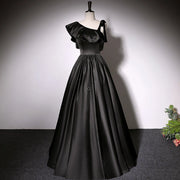 This elegant black satin evening dress features a timeless A-line silhouette with a sleeveless design and a lace-up back for a customizable fit. Its floor-length cut adds sophistication, making it an ideal choice for formal events, parties, and proms. Crafted to combine comfort with style, this dress ensures you look graceful and confident throughout your special occasion.