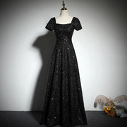 This floor-length evening dress combines elegance with subtle sparkle, featuring short sleeves and a lace-up detail for a flattering fit. The sequin embellishments add a refined shimmer, making it an ideal choice for parties, proms, or formal events. Its simple yet generous design ensures comfort and sophistication throughout your special occasion.