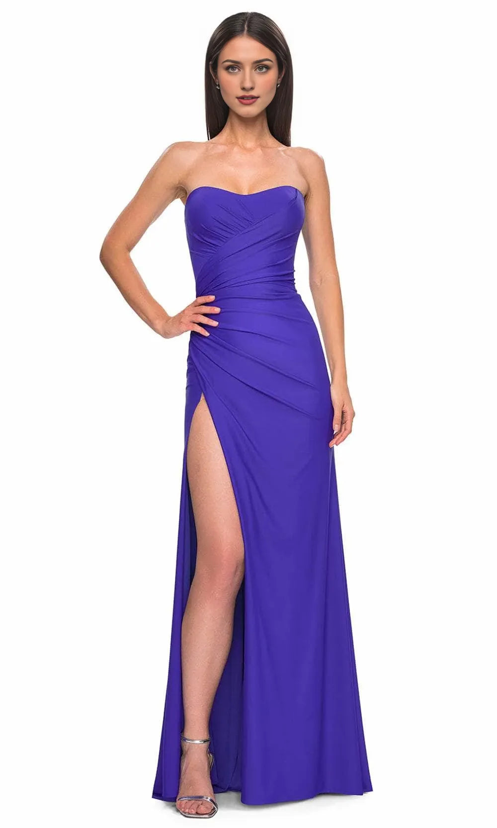 Simple Ruched Strapless Fitted High Slit Sleeveless Off the shoulder Lace-Up Back Floor length Prom Dress Cocktail Dress Homecoming Dress Evening Dress Party Dress - US 2 / UK 6 / EU 32