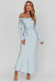 This prom dress features a mermaid silhouette crafted from smooth satin, fitting closely to create a streamlined, refined look. The one-shoulder + asymmetrical strap design adds a distinct stylish touch, while the long sleeves bring a polished vibe. The ruched waist enhances the tailored fit, making it ideal for prom events keeping the wearer confident and eye-catching.