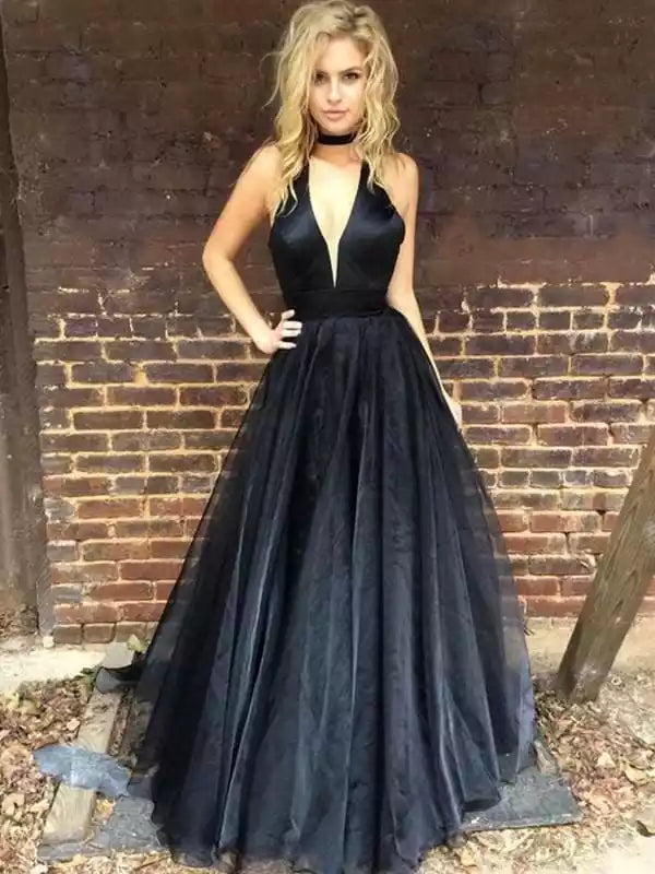 Sleeveless V-Neck Floor-Length A-line Ruffles Tulle Dresses Bridesmaid Dresses Prom Dress