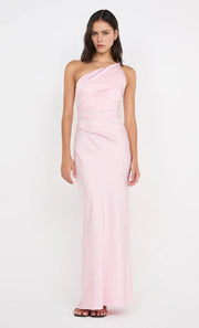 This prom dress has a sheath silhouette for a figure-hugging, sleek fit. The one-shoulder design with draped detail adds a soft, distinct touch, while the sleeveless style keeps it light. The open-back detail brings subtle allure, and the floor-length cut balances grace and ease ideal for prom events, helping the wearer feel confident and composed