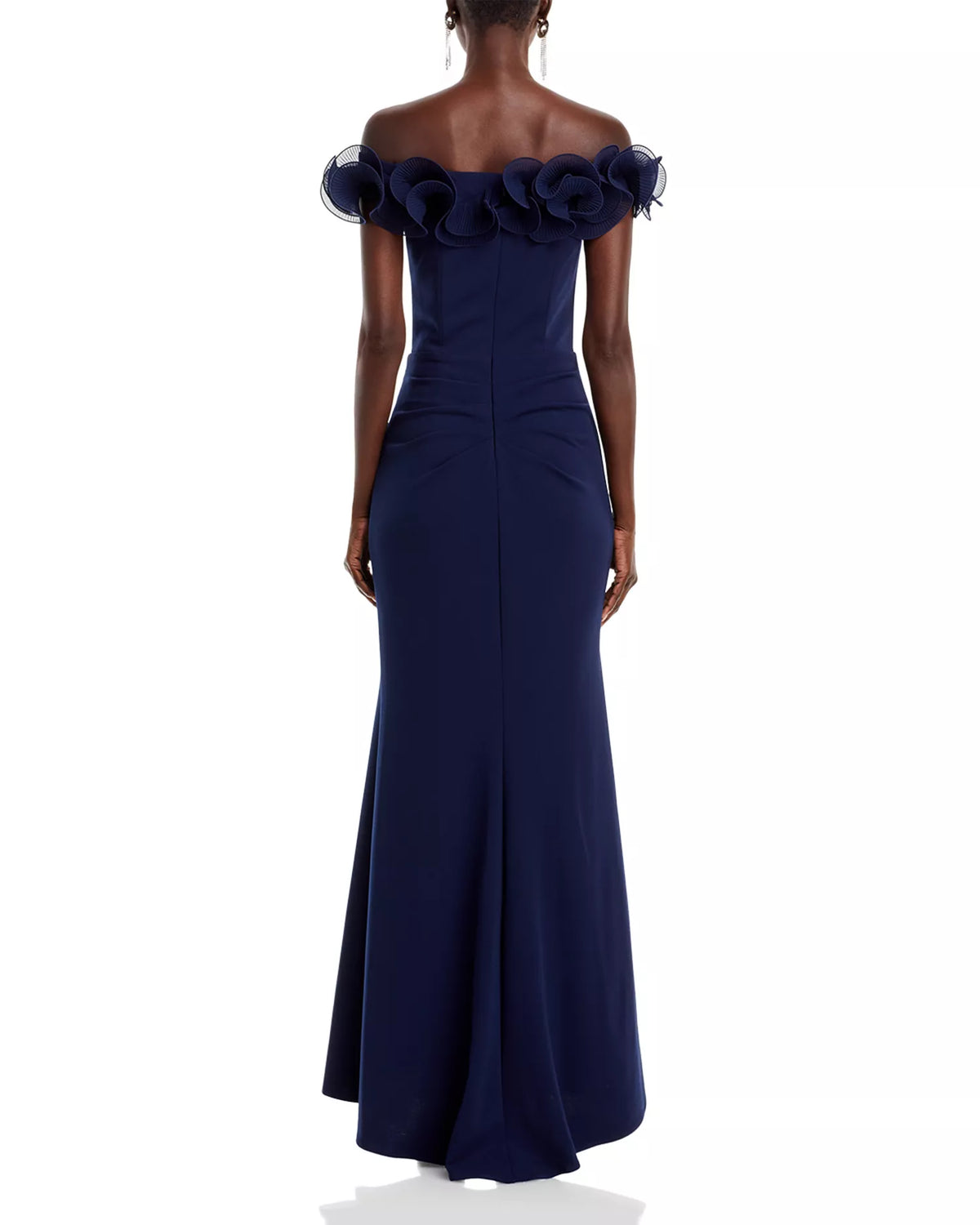 Soft Trumpet Off the Shoulder Ruffled Sleeve Zipper Back Prom Dress occasion: Bridal showers Red carpet events Upscale parties Masquerade balls Formal corporate events White tie events Female guests