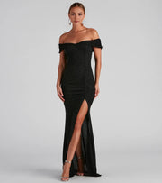 Sparkling Mermaid Off Shoulder Short Sleeve Zipper Back Floor Length Prom Dress - US 2 / UK 6 / EU 32