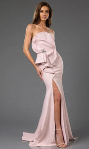 elegant prom dress features a straight, High Slit, Mid-Open Back sleeveless sheath design with a romantic off-the-shoulder neckline that highlights the shoulders gracefully. Crafted to floor length, it offers a timeless silhouette perfect for formal occasions. The long, flowing style enhances elegance, making it an ideal choice for women seeking classic sophistication with a modern touch.