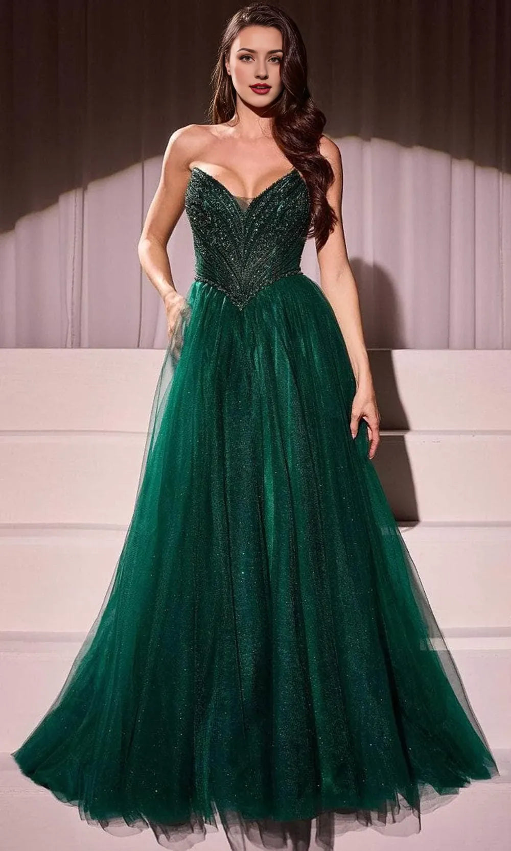 Strapless Embellished V-Neck Long Sleeveless Off the shoulder Floor length Prom Dress Cocktail Dress Homecoming Dress Evening Dress Party Dress