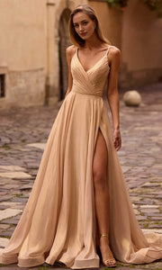 Surplice Deep V Neck Metallic Chiffon Sleeveless Spaghetti Strap Floor length Long Cocktail Dress Homecoming Dress Evening Dress Party Dress Prom Dress