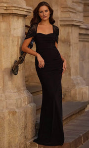 elegant floor-length prom dress features a classic sweetheart neckline and short sleeves, combining timeless style with understated sophistication. lace cap sleeves Beaded Its sheath silhouette offers a sleek, tailored fit that enhances natural curves while providing comfort throughout your special evening. Designed for women seeking simplicity without sacrificing elegance, this dress is perfect for making a refined statement at any formal occasion.