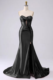 elegant black prom dress features a timeless sweetheart neckline and sleeveless, Mid-Open Back,off-the-shoulder design that highlights the shoulders gracefully. The mermaid silhouette gently contours the body and flares out at the floor length, creating a striking and sophisticated look perfect for formal events. Crafted to combine classic style with modern fashion, this dress offers both comfort and a flattering fit for an unforgettable evening.
