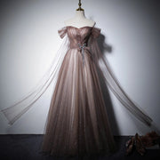 This elegant floor-length evening dress features a strapless, sleeveless design crafted from delicate tulle with intricate lace-up detailing. Its trendy silhouette combines sophistication and modern style, making it an ideal choice for parties, proms, and formal events. The lace-up back allows for a customizable fit, enhancing comfort and flattering your figure throughout the evening. Perfect for those seeking a refined yet contemporary look.