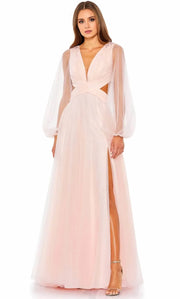 elegant V-neck prom dress features long sleeves and a classic A-line silhouette that flows gracefully to the floor. Designed to balance sophistication with romance, Lace-Up Back,High Slit,it offers a refined fit that flatters the figure while providing comfortable coverage. Ideal for ladies seeking a timeless dress that exudes both charm and poise at formal events and special occasions.