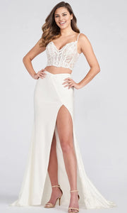 elegant two-piece prom dress features a flattering V-neckline and a sleeveless design that enhances sophistication. The off-the-shoulder trumpet silhouette gracefully accentuates the figure, Corset Bodice, Beaded, Lace Appliques, Scoop Back,while the floor-length hem provides a dramatic and refined look. Crafted to combine charm with comfort, this gown is an excellent choice for ladies seeking a standout ensemble for special occasions.