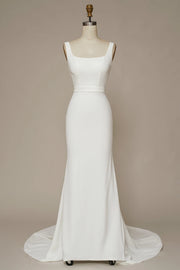 Chic Sheath Square Neck Sleeveless Plunge Back Maxi Wedding Dress