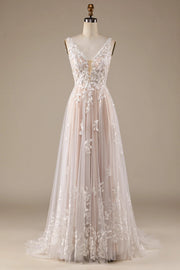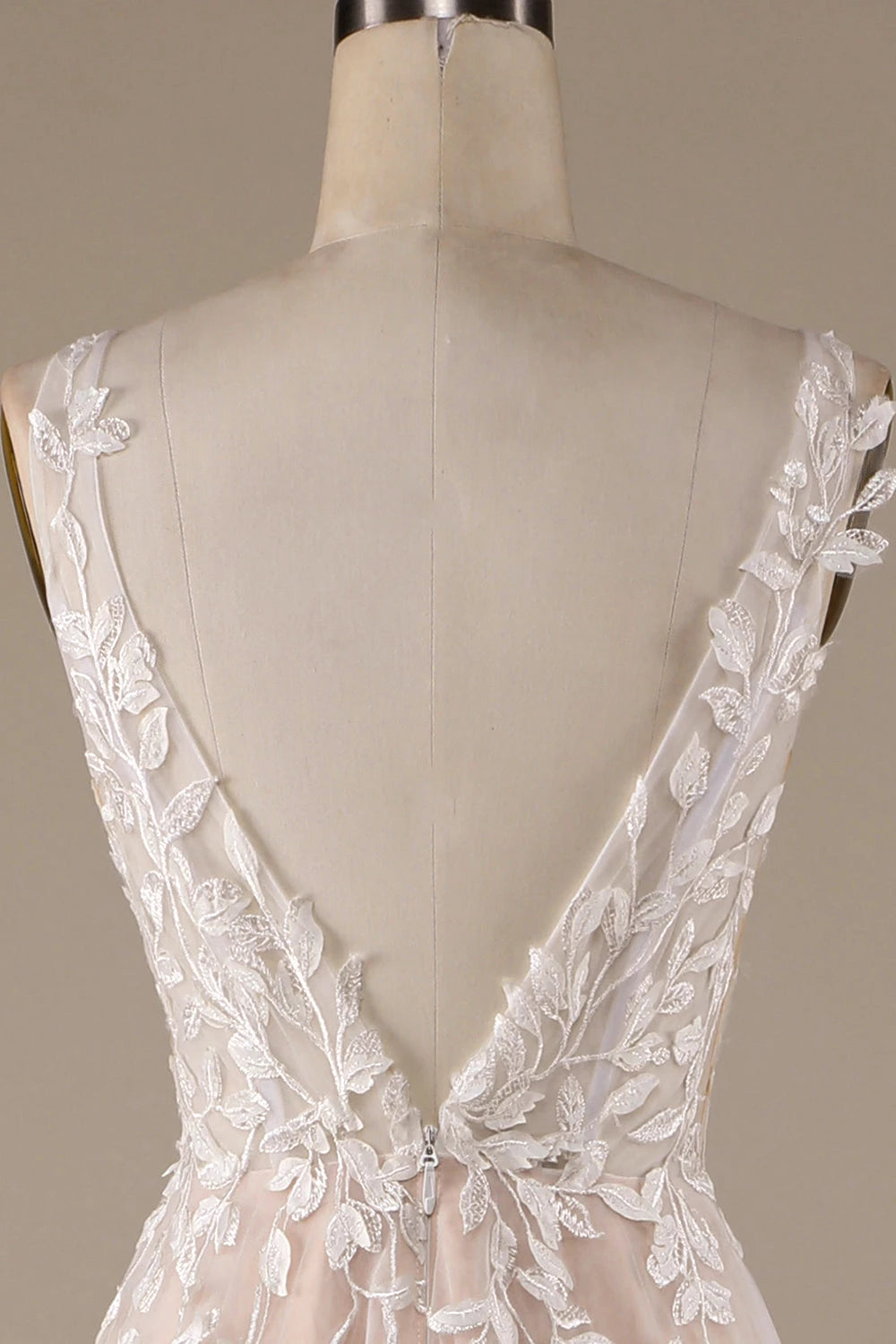 Dreamy A Line Deep V Neck Sleeveless Open Back Wedding Dress occasion: Bridal showers Red carpet events Upscale parties Masquerade balls Formal corporate events White tie events Female guests