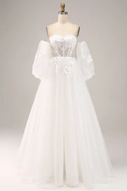 Dreamy Ball Gown Sweetheart Off Shoulder Puff Sleeve Zip Back Wedding Dress occasion: Bridal showers Red carpet events Upscale parties Masquerade balls Formal corporate events White tie events Female guests