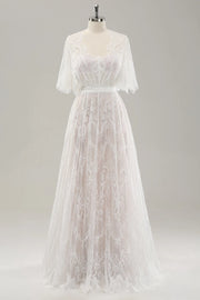Elegant A Line Sweetheart Cape Sleeve Button Back Wedding Dress occasion: Bridal showers Red carpet events Upscale parties Masquerade balls Formal corporate events White tie events Female guests