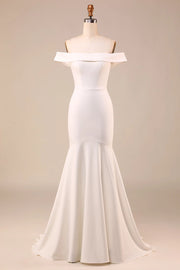 Elegant Mermaid Off Shoulder Sleeveless Bow Back Wedding Dress occasion: Bridal showers Red carpet events Upscale parties Masquerade balls Formal corporate events White tie events Female guests