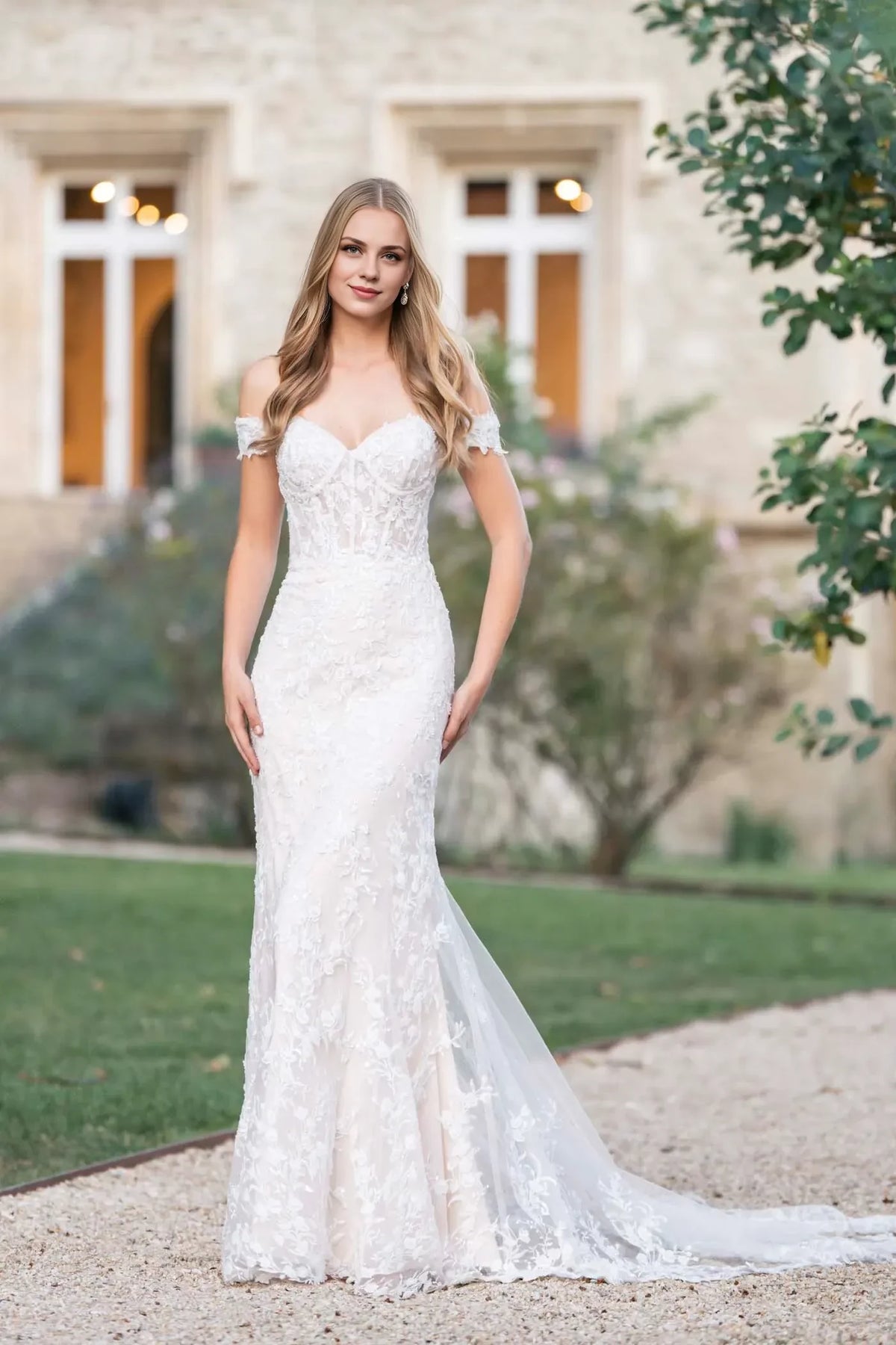 Enchanting Trumpet Off Shoulder Short Sleeve Open Back Wedding Dress occasion: Bridal showers Red carpet events Upscale parties Masquerade balls Formal corporate events White tie events Female guests