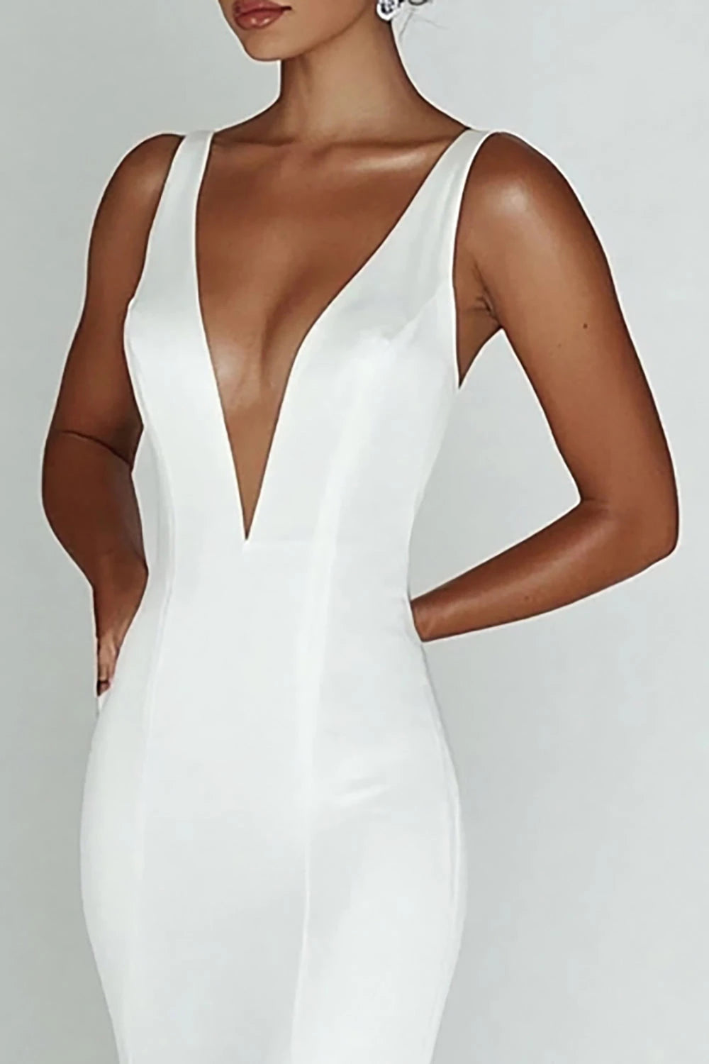 Glamorous Mermaid Deep V Neck Sleeveless Open Back Wedding Dress occasion: Bridal showers Red carpet events Upscale parties Masquerade balls Formal corporate events White tie events Female guests