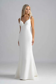 Shine gorgeously on your wedding day with this trumpet dress. The sweetheart neckline exudes romance, and the sleeveless design keeps it airy. The cowl-back style adds a touch of elegance, while the floor length skirt flows beautifully, making it perfect for your special celebration.