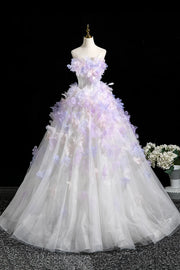 Lavender Appliques White Tulle Long Prom Dress Beautiful Fairy Party Dress Wedding Dresses