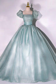 This elegant green tulle gown features short sleeves and a floor-length silhouette, perfect for formal occasions such as proms, evening events, or weddings. The lightweight tulle fabric offers a graceful flow and comfortable wear, while the refined design ensures a sophisticated and timeless look. Ideal for those seeking a blend of classic style and modern charm.