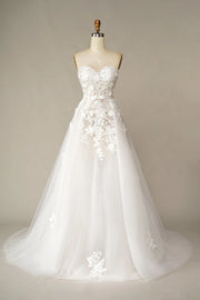 Luxurious Ball Gown Sweetheart Neck Sleeveless Lace Back Maxi Wedding Dress - US 2 / UK 6 / EU 32