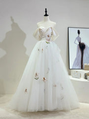 Off the Shoulder Beautiful Tulle Lace Long Prom Dress Evening Party Dress Wedding Dresses - US 2 / UK 6 / EU 32