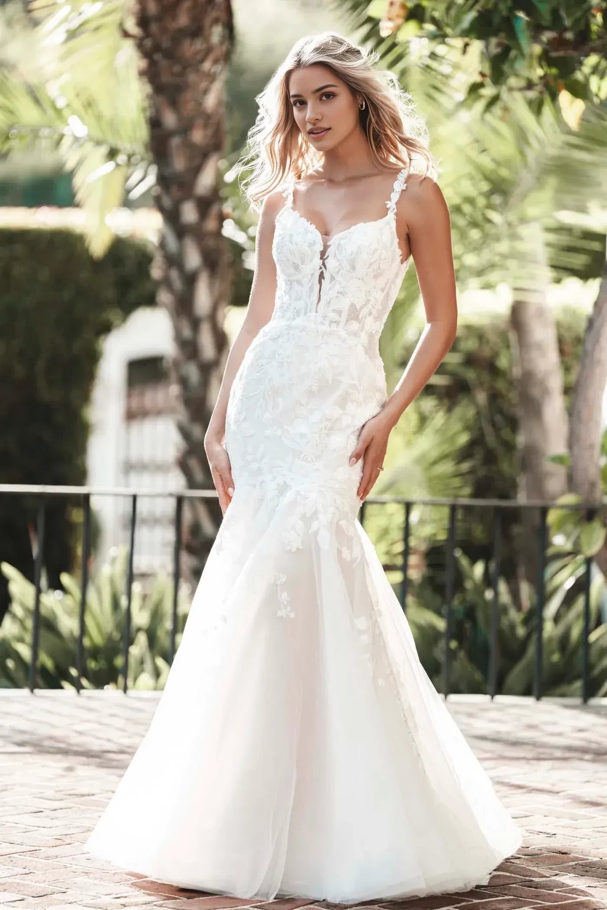 Radiant Trumpet Sweetheart Neckline Spaghetti Strap Open Back Wedding Dress occasion: Bridal showers Red carpet events Upscale parties Masquerade balls Formal corporate events White tie events Female guests