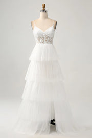 Romantic A Line V Neck Sleeveless Spaghetti Strap Zip Back Wedding Dress occasion: Bridal showers Red carpet events Upscale parties Masquerade balls Formal corporate events White tie events Female guests