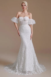 Romantic Mermaid Sweetheart Neck Off Shoulder Lace Up Back Wedding Dress occasion: Bridal showers Red carpet events Upscale parties Masquerade balls Formal corporate events White tie events Female guests