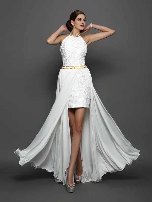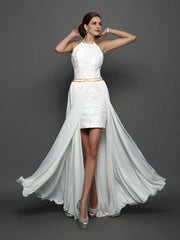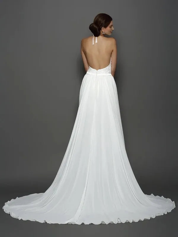 Sleeveless Chiffon High Neck Chapel Train With Lace Wedding Dresses