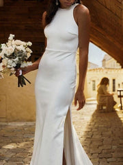 Sleeveless Column Stretch Crepe Halter Sweep Train Wedding Dresses