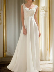 V-neck Lace Empire Sleeveless Sweet Train Chiffon Wedding Dresses