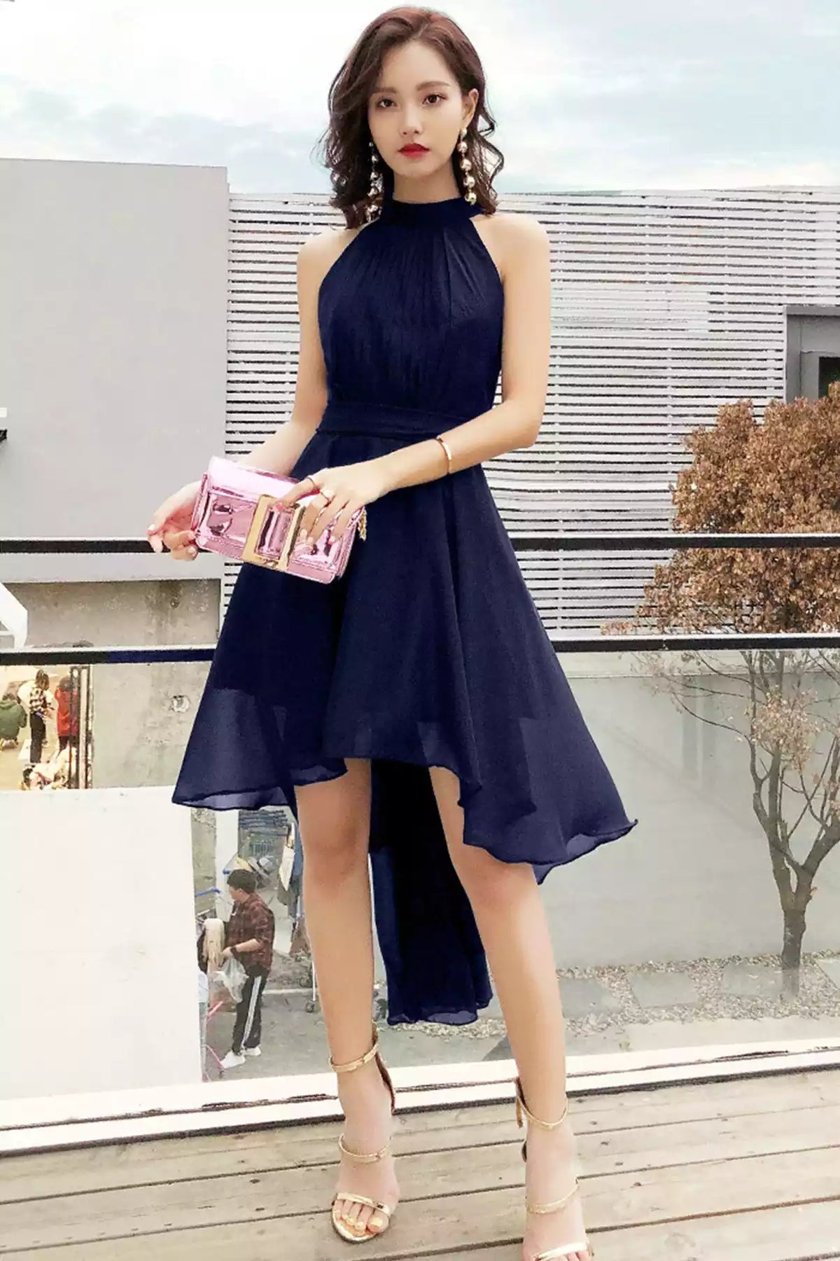 This A-line chiffon dress features a high-low hemline that adds a modern twist to classic elegance. Crafted from lightweight chiffon, it offers graceful movement and comfort, making it ideal for prom or evening occasions. The flattering silhouette enhances your figure while the playful cut ensures you stand out with subtle sophistication. Perfect for those seeking a blend of charm and contemporary style.