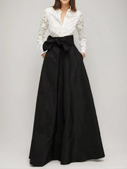 A-Line Shirt Lace Collar Long Sleeves Floor-Length with Bow Mother of the Bride Dresses