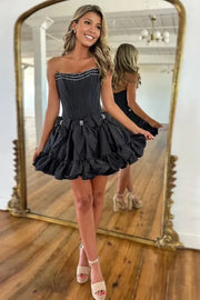 A Line Strapless trendy Short Black With Bows Party Dresses Homecoming Dress