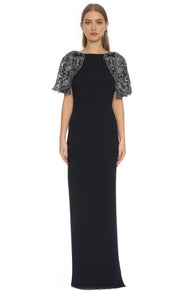 elegant prom dress features a classic bateau neckline and a sophisticated off-the-shoulder design that enhances your silhouette. Crafted with short sleeves and a sleeveless option, Fitted, Embellished Short Sleeves, Full Length, V Back,it offers versatile styling for various occasions. The floor-length cut adds timeless grace, making it perfect for formal events. Designed with attention to detail and comfort, this dress ensures you stand out with refined charm on your special night.
