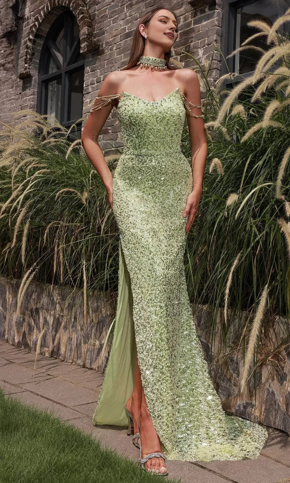 Beautiful Unique Allover Sequin Scoop Neck Sleeveless Off the shoulder With Slit Floor length Long Homecoming Dress Evening Dress Party Dress Prom Dress - US 2 / UK 6 / EU 32