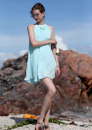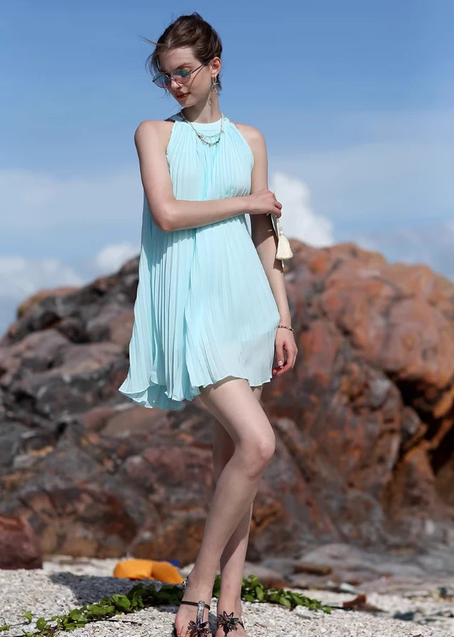 Blue A Line Halter Pleated Chiffon Sleeveless Off-the-shoulder Short Prom Dress Cocktail Dress Homecoming Dress Evening Dress Party Dress