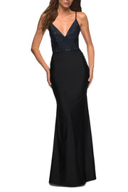 Radiant Mermaid V Neck Spaghetti Strap Crisscross Back Floor Length Evening Dress