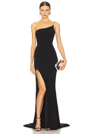 This dress features a stylish mermaid silhouette with a one-shoulder design, sleeveless style, open-back detailing, a slit front, and a floor-length cut that offer a sophisticated and fashionable look. It’s perfect for evening events, ensuring you look stylish and confident.