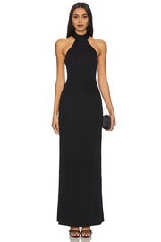 This dress features a stylish sheath silhouette with a halter neck, sleeveless style, open-back detailing, and a floor-length cut that offer a sophisticated and fashionable look. It’s perfect for evening events, ensuring you look stylish and confident.