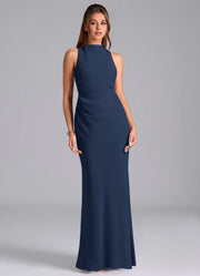 Stylish Sheath High Neck Sleeveless Criss Cross Back Floor Length Bridesmaid Dress