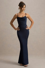 Sultry Mermaid Cowl Neck Sleeveless Crisscross Back Floor Length Evening Dress - US 2 / UK 6 / EU 32