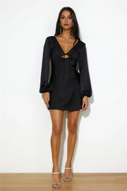 custom-made homecoming dress features a flattering V-neck and long sleeves, cut out open back designed to offer a sleek sheath silhouette. Its short length combines elegance with a youthful edge, making it an ideal choice for formal events. Crafted to provide a tailored fit, this dress enhances your natural shape while ensuring comfort throughout your celebration. Perfect for ladies seeking a sophisticated yet trendy look for homecoming or similar occasions.