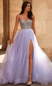 floor-length prom dress combines elegance and comfort with its V-neck and sleeveless design, Spaghetti Straps Lace-Up Slit tailored in a flattering A-line silhouette. Made from delicate tulle, it offers lightness and refined movement, perfect for making a graceful statement at formal events. Ideal for ladies seeking a timeless and sophisticated look.