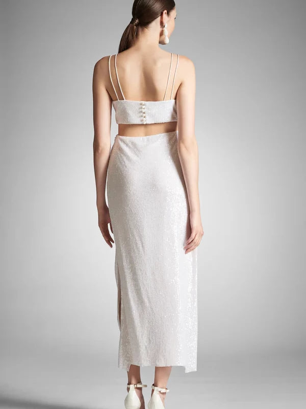 This elegant white sheath dress features delicate spaghetti straps and an ankle-length silhouette, perfect for homecoming or any special occasion. Its streamlined design offers a flattering fit that enhances your natural shape, while the lightweight fabric ensures comfort throughout the event. Ideal for those seeking a sophisticated yet understated look.